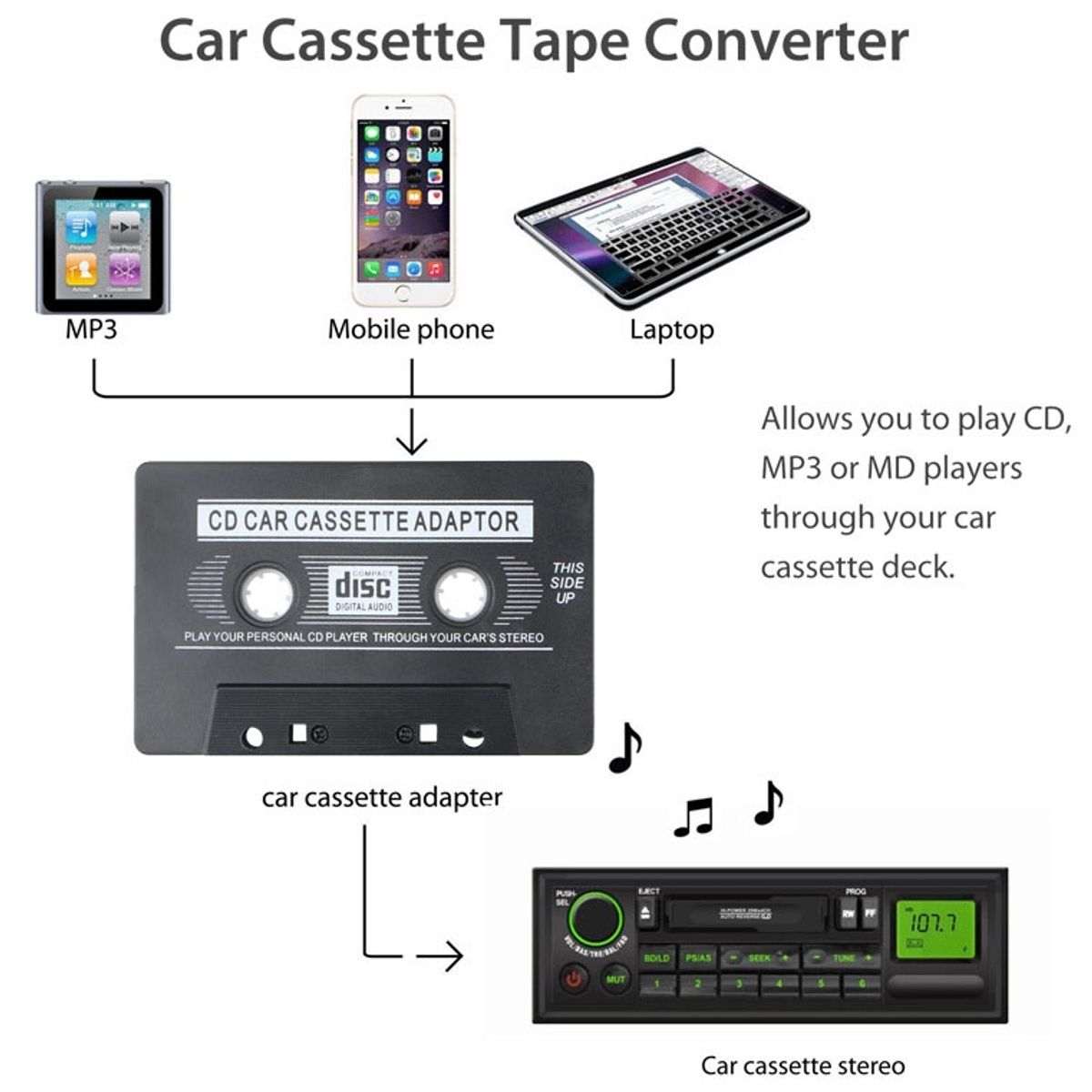 Hinweis: Funktioniert nur mit Kassettenschächten – nicht geeignet für reine CD- oder digitalen Radios ohne Kassettendeck.